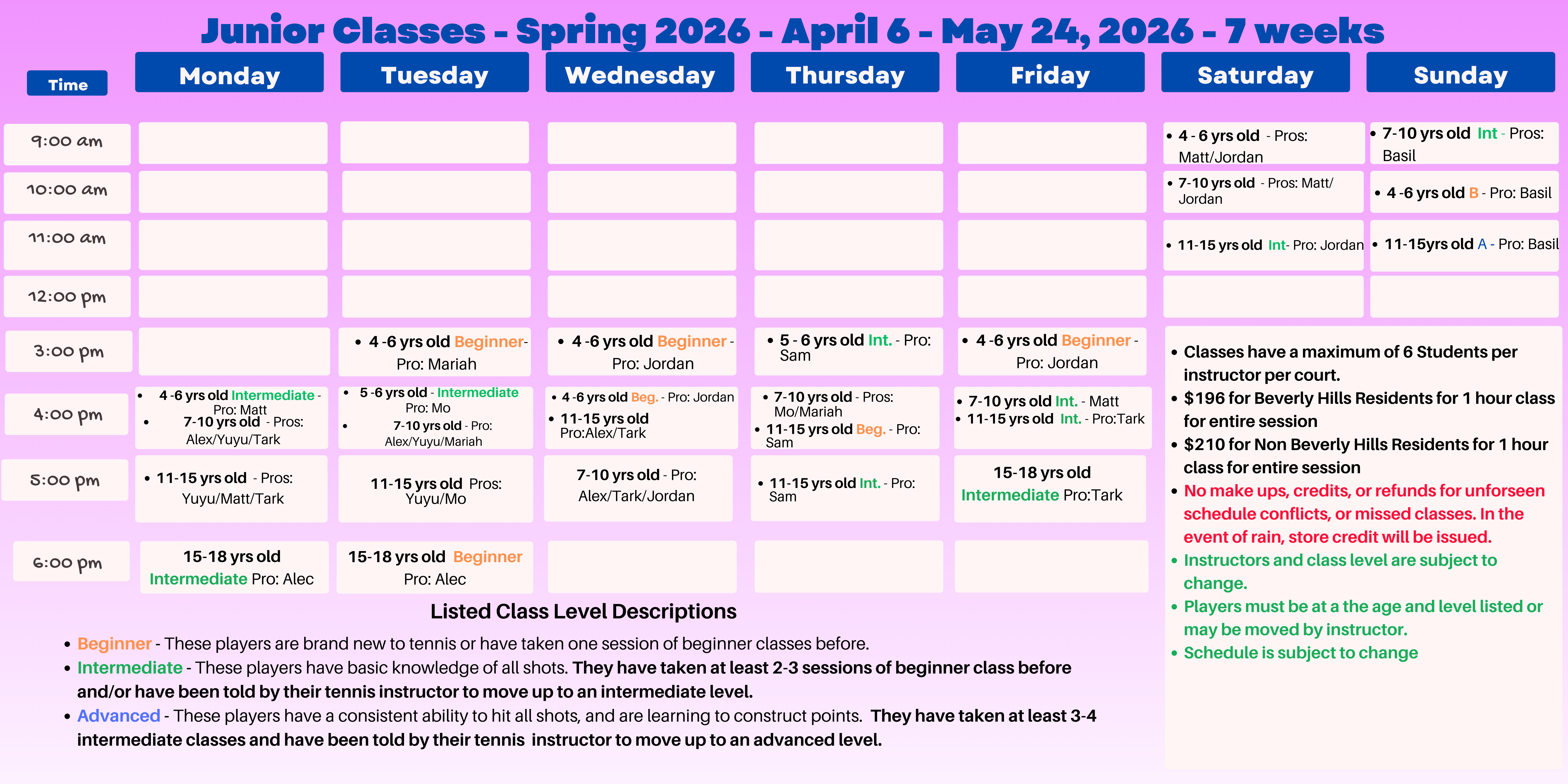 2:30pm for Non-Beverly Hills Resident Junior Classes
