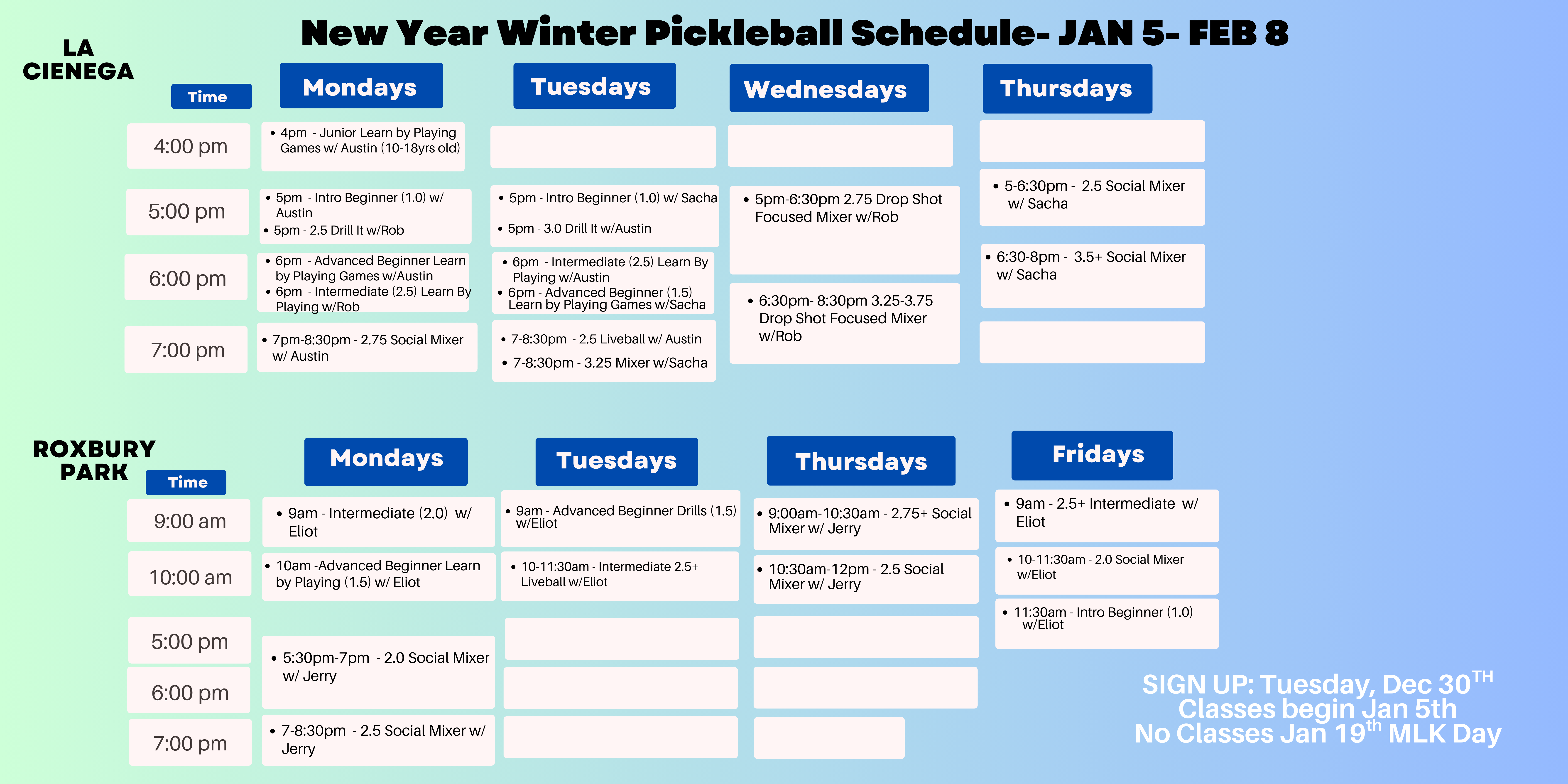 SIGN UP: starting Tuesday, Dec 30th @2pm (Online Only) (Beverly Hills Residents Priority Time: @12pm)